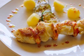 ¿Lenguado con patatas fritas? ¡No! Lo parecen, pero se trata de un rollo de lenguado relleno de cangrejo y con un sencillísima ensalada de mango como guarnición. En verano apetecen ingredientes más frescos, como por ejemplo esta fruta exótica. El mango es una fruta que juega muy bien con el lenguado ya que es de textura […]